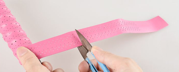一般吸汗帶寬度25mm每次壓1/3合適,都可以完全纏繞到拍柄上端,最后準(zhǔn)備好附帶的膠帶,撕開最開始留下的膠帶,把吸汗帶末端用膠帶纏繞至不會散開。